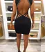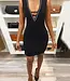Elegante sexy jurkje met open rug en cut outs en parels decoratie - zwart