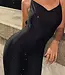 Festival! Shiny jumpsuit met open rug en strass steentjes -zwart