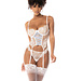 Elevate your special night with this two-piece set, featuring a special bridal touch. The set includes an eyelash lace bustier with underwire, adjustable straps, and a blue lace-up ribbon detail, along with a matching thong.