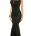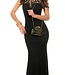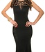 Luxe evening lang jurk met kant - zwart