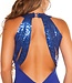 Luxe gala lang jurk met open rug en pailletten - blauw