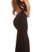 Luxe gala lang jurk met open rug en pailletten - zwart