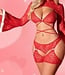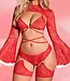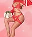 Luxe kerst kanten lingerie 3-delige set met bont - rood