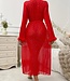 Luxe kimono sexy lingerie met strass en bont - rood