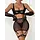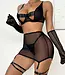 Luxe sexy mesh lingerie 5-delige set met open achterkant - zwart