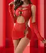 Sexy 3-delige mesh lingerie set met cut out - rood