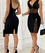 Sexy deep V neck bodycon jurkje met kant en rits- zwart
