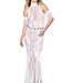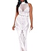 Sexy elegante bodystocking lang jurk met visnet en kant - wit