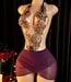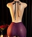 Sexy elegante lingerie jurk met kant en open rug - wijn