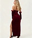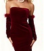 Sexy elegante velvet lang jurkje met arm warmer - wijn