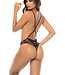 Elevate the ambiance with this eyelash lace bodysuit designed to showcase your finest features. Adjustable straps and crotch fastening with an open cup design.