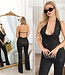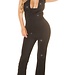 Sexy glitter jumpsuit met open rug en waterval nek - zwart