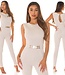 Sexy jumpsuit met gold buckle en rits achterkant -beige