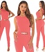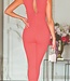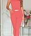 Sexy jumpsuit met gold buckle en rits achterkant -koraal