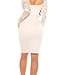 Sexy jurkje met deep v neck en kanten mouwen - beige