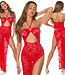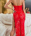 Sexy kanten cover up jurkje met cut out en slip - rood