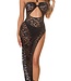 Sexy kanten cover up jurkje met cut out en slip - zwart