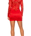 Sexy kanten jurkje met doorzichtig rug en mouwen - rood