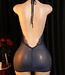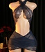 Sexy kanten lingerie jurkje met open rug - navy
