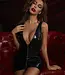 Sexy laklook jurkje met deep V neck en rits - zwart