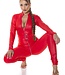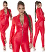 Sexy leatherlook jumpsuit met doorlopende rits en riem - rood
