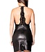 Sexy leatherlook mini jurkje met kant en open rug - zwart