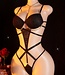Sexy luxe bodysuit lingerie met kant en ketting - zwart