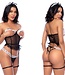 Add a little naughtiness with this sexy maid costume. Includes bustier top with open cups and built-in garter belts, lace-up back design, matching thong and head piece.