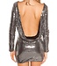 Sexy mini jurk met pailletten en waterval open rug - zwart zilver