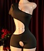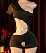 Sexy playsuit lingerie met open kruis en ketting role play- zwart