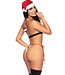 Sexy Santa costume. Includes triangle halter top with pompom details and matching thong with decorative buttons and hat.