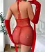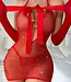 Sexy shimmer visnet lingerie jurkje met hartje - rood