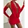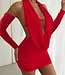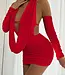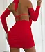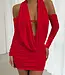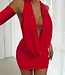 Sexy waterval jurkje met open rug en arm warmer - rood