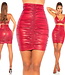 Sexy wetlook gathered rokje met hoge taille - donkerrood