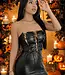 Sexy wetlook jurkje met cut outs en veters (incl.string) - zwart