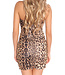 Kort strapless jurkje met panter print en zwarte steentjes op het middenstuk. Het jurkje heeft aan de achterzijde een rits en heeft een voorgevormd bovenstuk. Het model draagt de maat One Size.
