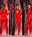 Super hot! Luxe laklook catsuit met veters en cut out - rood