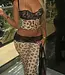 SUPER HOT SET! Sexy mesh open rug topje + broekje met kant en panterprint